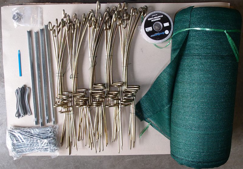 7. Zaun aufrichten, Spannschnur durch Haltestäbehaken führen;